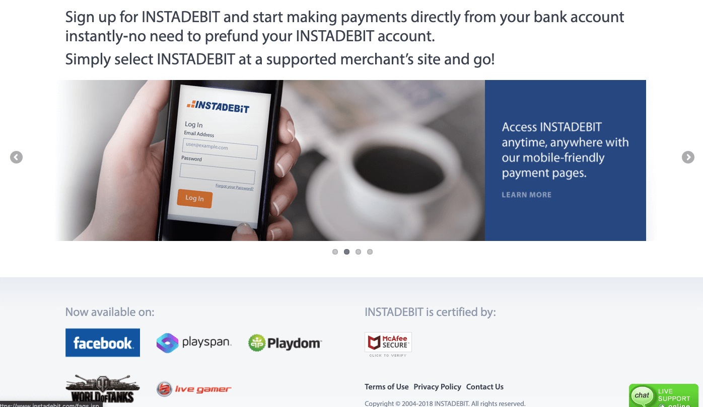 | Instadebit | $10 | N/A | Instant | N/A |
